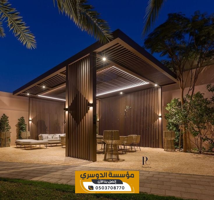 تُعد البرجولات من أهم عناصر التصميم الخارجي التي تضيف لمسة جمالية وعملية للمساحات المفتوحة مثل الحدائق والأسطح والفناءات وتوفر البرجولات الظل والراحة وتُنفذ بتصاميم متنوعة تناسب جميع الأذواق حيث يمكن تصنيعها من الخشب أو الحديد أو الألمنيوم أو الشينكو حسب رغبة العميل وتُستخدم في الجلسات الخارجية لإضفاء طابع عصري أو كلاسيكي يتناغم مع المكان وتتميز بسهولة التركيب ومتانة الخامات وإمكانية إضافة الإنارة أو الستائر الجانبية لتعزيز الخصوصية والجمال وتُقدم مؤسسة الدوسري في الرياض والمناطق المجاورة خدمات تصميم وتنفيذ البرجولات باحترافية عالية وجودة مضمونة تناسب جميع المواقع والاستخدامات.